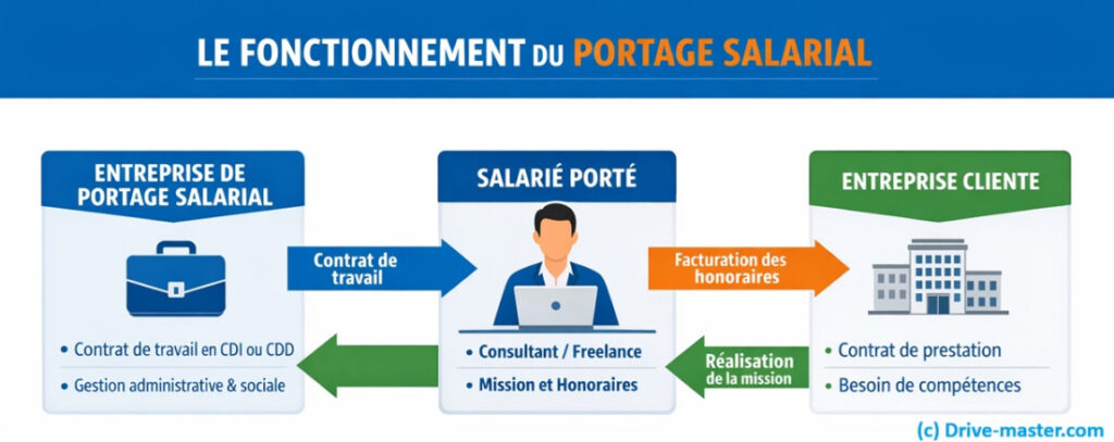 Voici un schéma pour bien comprendre comment fonctionne concrètement le portage salarial :